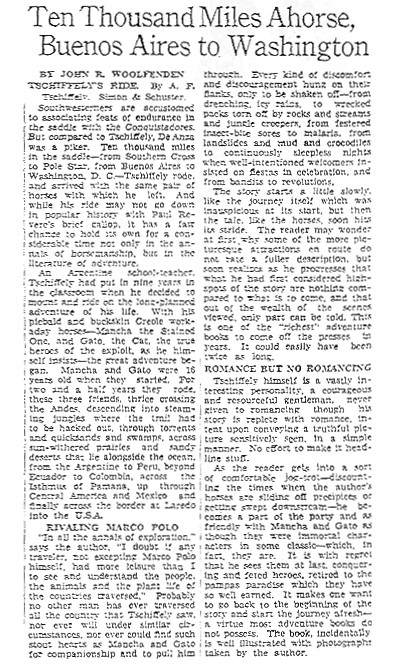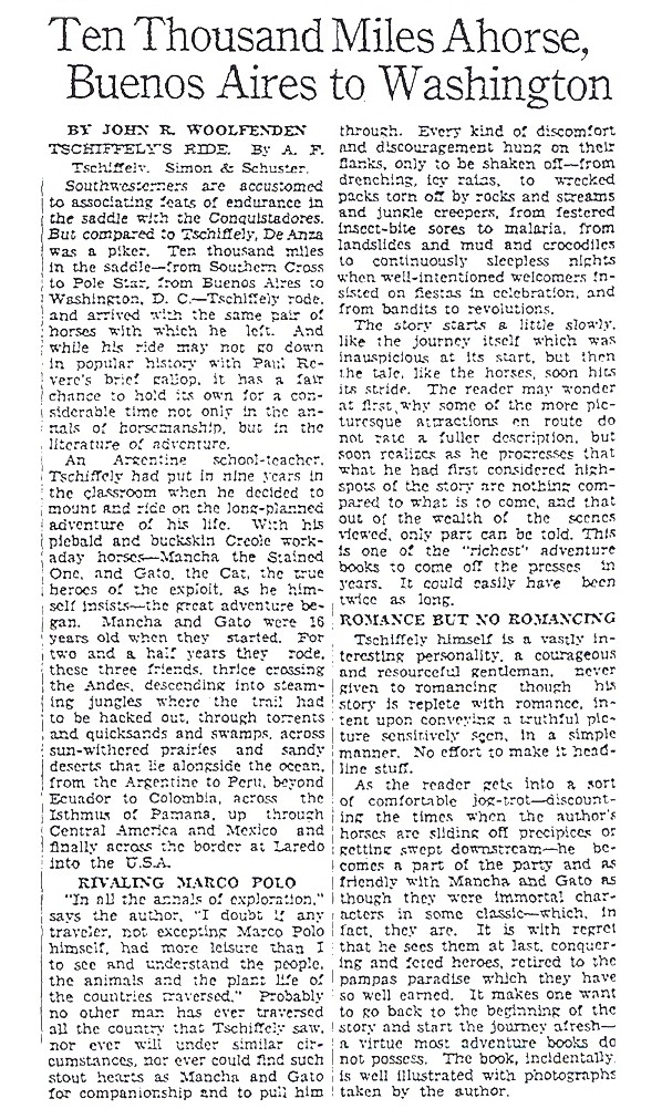 - a review of Tschiffely's Ride. |