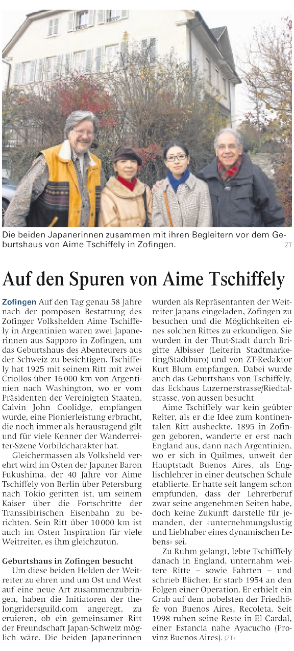 already visited Aimé's birthplace of Zofingen. Pictured right is an article