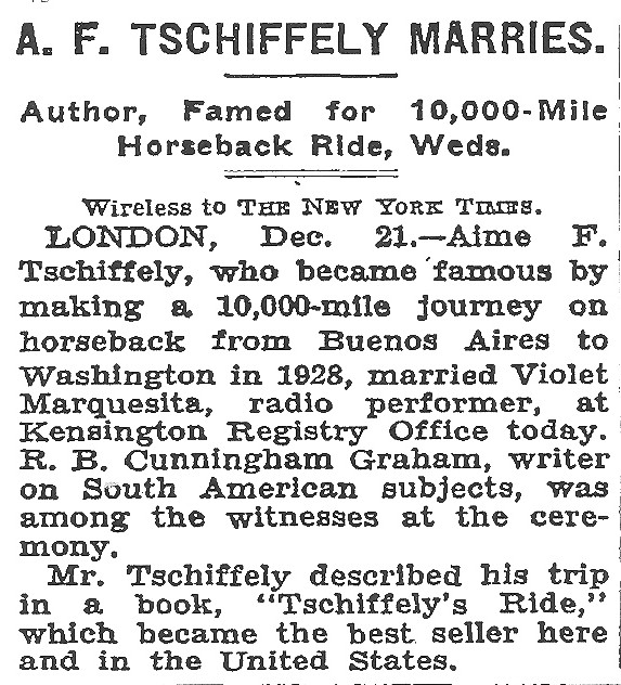 them. Violeta Hume married Aimé Tschiffely on 21st